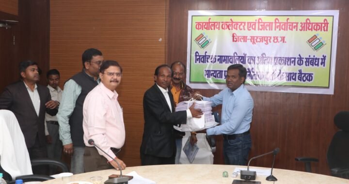 सूरजपुर, छत्तीसगढ़ By ACGN 7647981711, 9303948009 संवाददाता सौरभ साहू जिला निर्वाचन अधिकारी ने राजनीतिक दलों के प्रतिनिधियों को साझा की...
