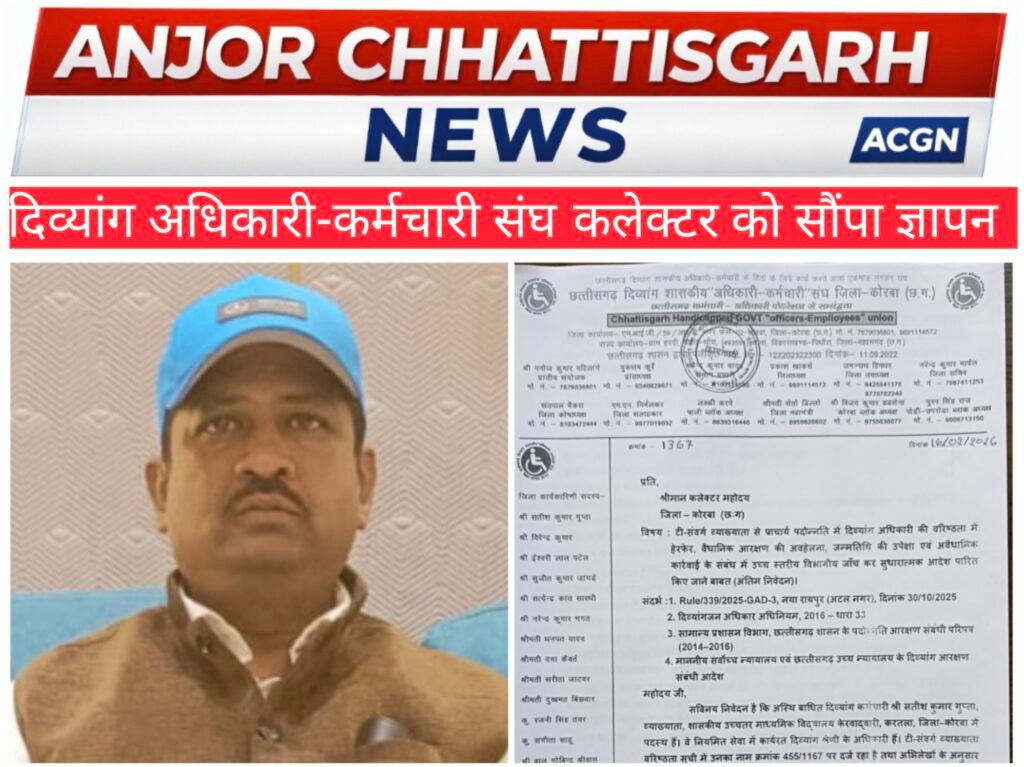 कोरबा, छत्तीसगढ़By ACGN 7647981711, 9303948009 वरिष्ठता में कथित हेरफेर, दिव्यांग आरक्षण की अनदेखी और बायोमेट्रिक समय-सीमा में लचीलापन की मांग...