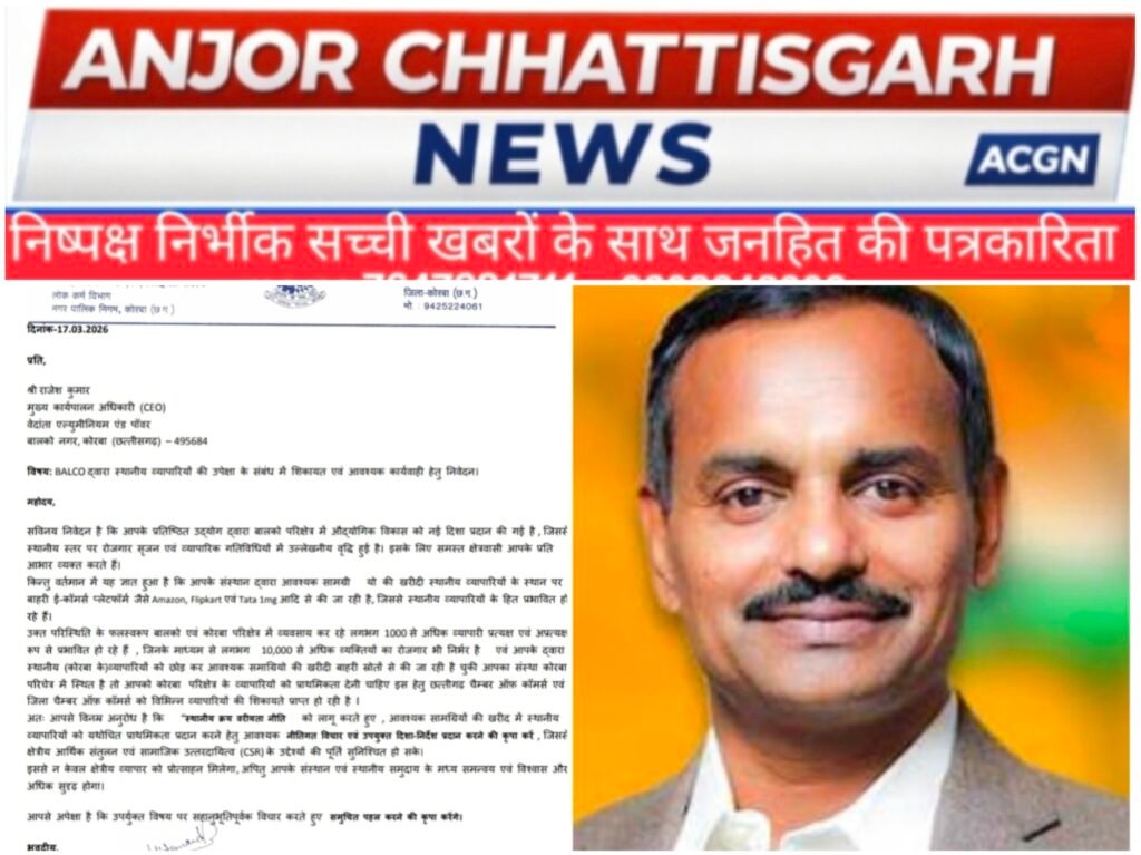 कोरबा, छत्तीसगढ़By ACGN 7647981711, 9303948009 ऑनलाइन प्लेटफॉर्म से सामग्री खरीदने का आरोप, स्थानीय व्यापारियों को प्राथमिकता देने की मांग कोरबा...