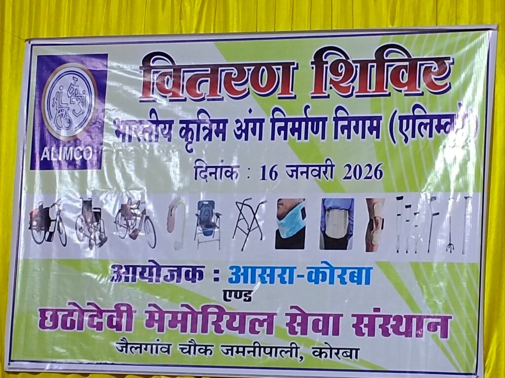 कोरबा ACGN:- कोरबा जिले के दर्री क्षेत्र स्थित सिद्धि वाटिका में दिव्यांगजनों के लिए ट्राइसाइकिल वितरण शिविर का आयोजन किया गया। यह कार्यक्रम छठो देवी मेमोरियल सेवा संस्थान एवं आसरा के संयुक्त तत्वावधान तथा शासन के समाज कल्याण विभाग के सहयोग से आयोजित किया गया, जिसमें क्षेत्रीय विधायक एवं छत्तीसगढ़ शासन के उद्योग, श्रम एवं आबकारी मंत्री लखन लाल देवांगन मुख्य अतिथि के रूप में विशेष रूप से उपस्थित रहे।