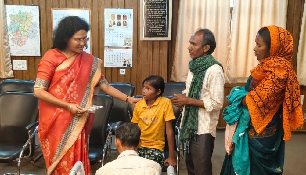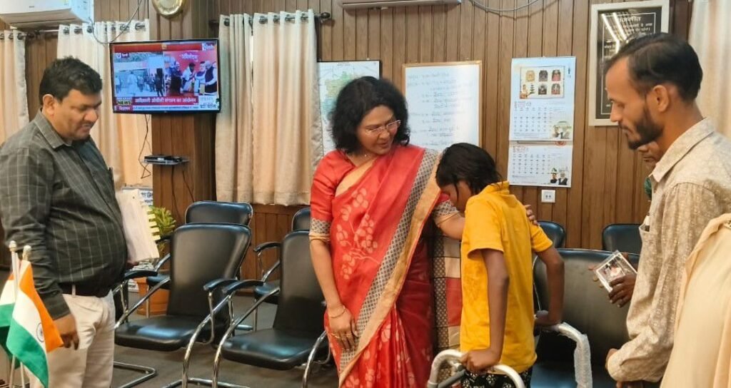 कलेक्टर दिव्या उमेश मिश्रा ने दिव्यांग बालिका रीना निषाद को वॉकर व कृत्रिम पैर प्रदान किए