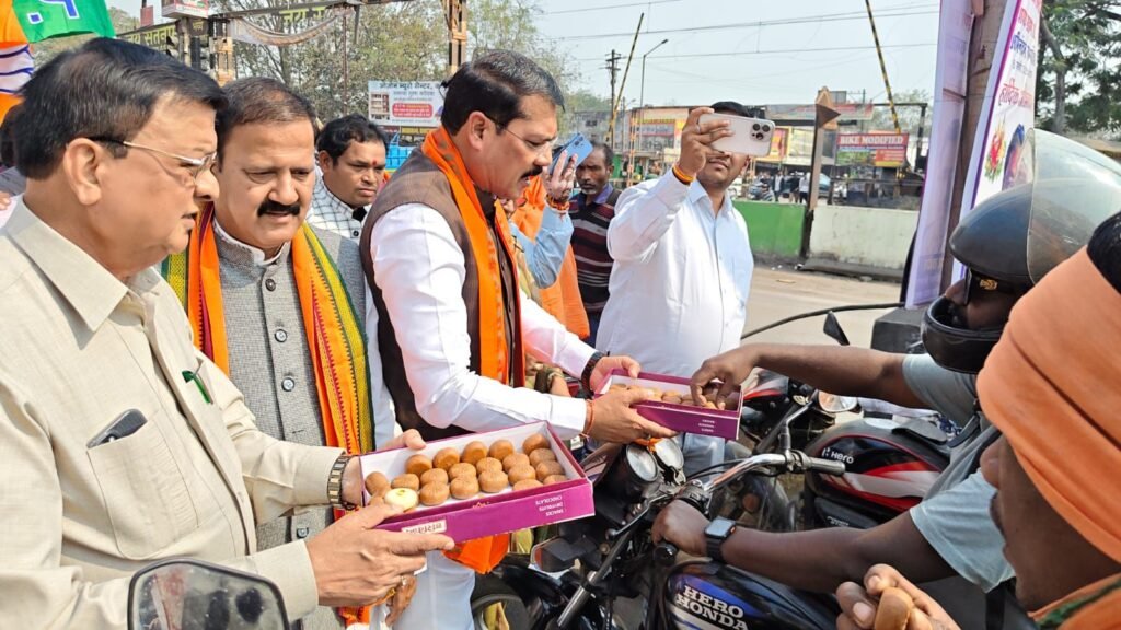 यह आयोजन उद्योग मंत्री लखनलाल देवांगन, भाजपा जिलाध्यक्ष गोपाल मोदी, कटघोरा विधायक प्रेमचंद पटेल एवं महापौर संजू देवी राजपूत के नेतृत्व में टीपी नगर चौक में संपन्न हुआ। कार्यक्रम में बड़ी संख्या में पार्टी पदाधिकारी, जनप्रतिनिधि, कार्यकर्ता एवं आम नागरिक उपस्थित रहे, जिससे पूरे क्षेत्र में उत्सव और उल्लास का वातावरण निर्मित हो गया।