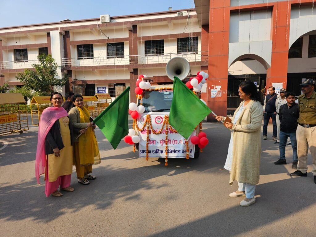 मुंगेली ACGN:- महिला एवं बाल विकास विभाग द्वारा 23 जनवरी 2026 को कलेक्टर कार्यालय में बालिका दिवस के अवसर पर ‘बेटी बचाओ बेटी पढ़ाओ’ योजना के तहत जागरूकता रथ को हरी झंडी दिखाकर मुंगेली जिले के तीनों ब्लॉक में रवाना किया गया। इस अवसर पर अपर कलेक्टर श्रीमती निष्ठा पांडे तिवारी, डिप्टी कलेक्टर श्रीमती सारिका मितल, डिप्टी कलेक्टर श्री मायानंद चंद्रा और जिला कार्यक्रम अधिकारी महिला एवं बाल विकास विभाग श्रीमती संजूला शर्मा उपस्थित रहे।