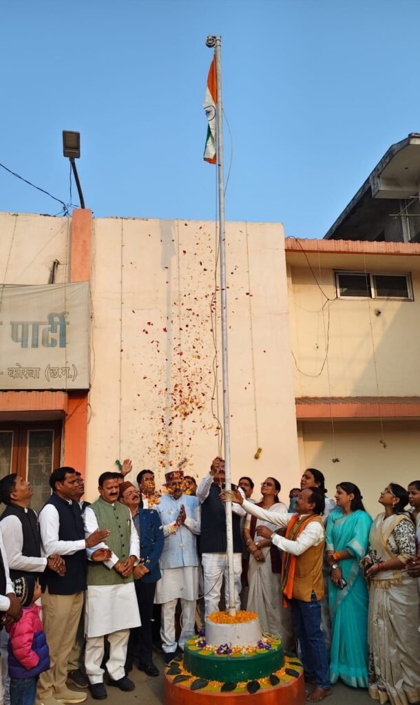 कोरबा। भारतीय गणतंत्र की 77वीं वर्षगांठ के पावन अवसर पर 26 जनवरी को भारतीय जनता पार्टी जिला कार्यालय पं. दीनदयाल कुंज टीपी नगर कोरबा में देशभक्ति और उत्साह का माहौल देखने को मिला। भाजपा जिलाध्यक्ष श्री गोपाल मोदी जी ने विधिवत तिरंगा फहराकर राष्ट्रीय ध्वज को सलामी दी।