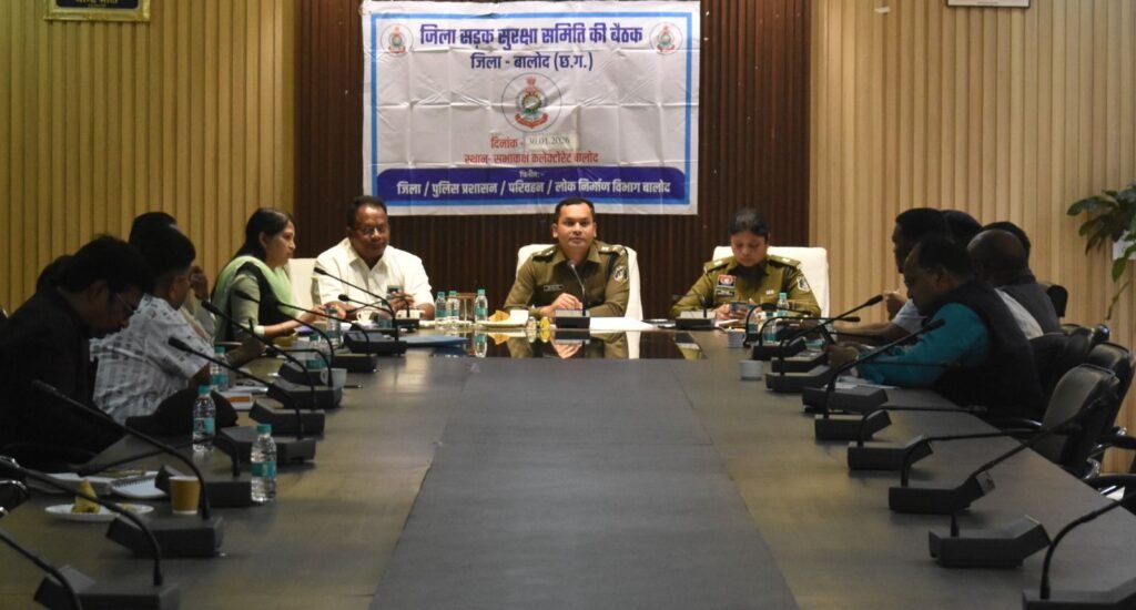 बालोद ACGN :- जिले में सड़क दुर्घटनाओं की रोकथाम के लिए प्रभावी उपाय सुनिश्चित करने के उद्देश्य से जिला स्तरीय सड़क सुरक्षा समिति की बैठक शुक्रवार को संयुक्त जिला कार्यालय सभाकक्ष में आयोजित की गई। बैठक में पुलिस अधीक्षक योगेश कुमार पटेल, अपर कलेक्टर अजय किशोर लकरा और अतिरिक्त पुलिस अधीक्षक मोनिका ठाकुर विशेष रूप से उपस्थित रहे।