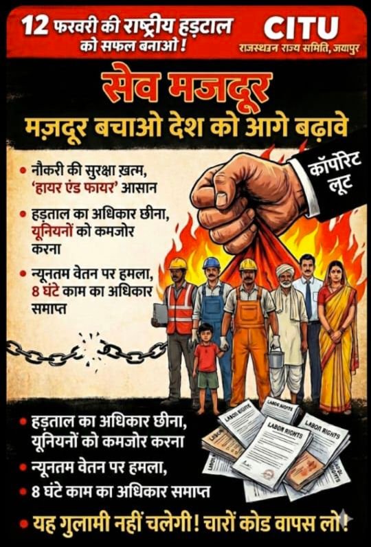संघ ने राष्ट्रीय ट्रेड यूनियन मंच द्वारा 12 फरवरी को प्रस्तावित CITU की राष्ट्रीय हड़ताल को पूर्ण समर्थन देने का ऐलान करते हुए कहा है कि यह संघर्ष केवल मजदूरों तक सीमित नहीं है, बल्कि दिव्यांग, वंचित और कमजोर तबके के अस्तित्व से भी सीधे जुड़ा हुआ है।