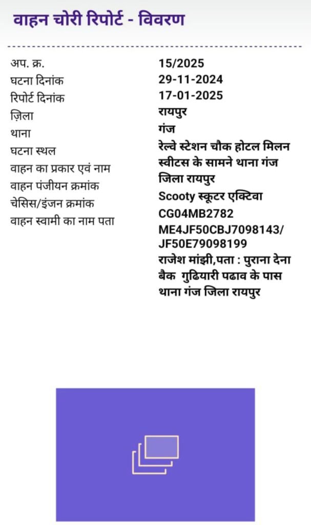 निरीक्षण के समय थाना तोरवा परिसर में खड़ी एक लावारिस मोटर साइकिल को सशक्त मोबाइल एप के माध्यम से सर्च किया गया, जिसमें स्कूटी प्लेजर क्रमांक सीजी 04 सीएक्स 7848 के संबंध में जानकारी सामने आई कि यह वाहन जिला रायपुर के थाना सिविल लाइन में दर्ज अपराध क्रमांक 780/2022 में चोरी गई मशरूका है। इसी तरह एक अन्य दोपहिया वाहन एक्टिवा क्रमांक सीजी 04 एमबी 2782 के संबंध में जांच करने पर यह पाया गया कि इसके चोरी होने का मामला जिला रायपुर के गंज थाना में अपराध क्रमांक 15/2025 के तहत पंजीबद्ध है।