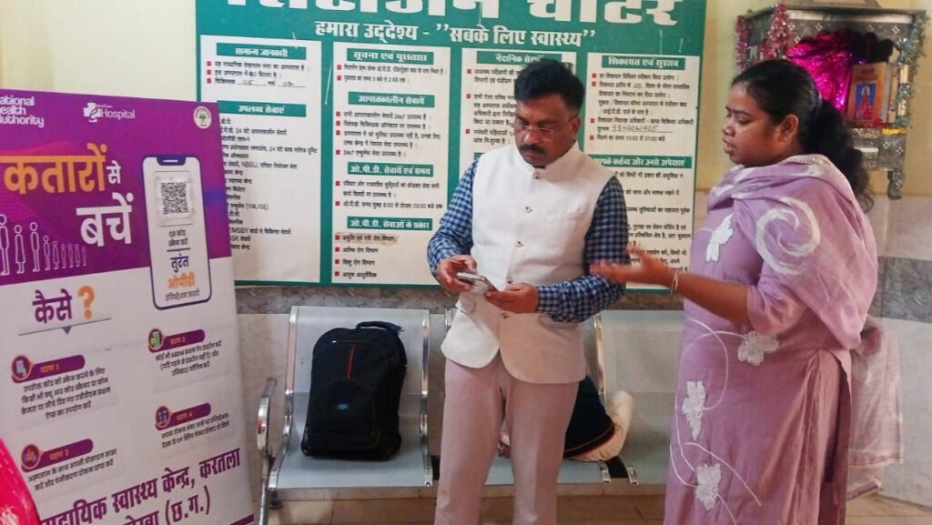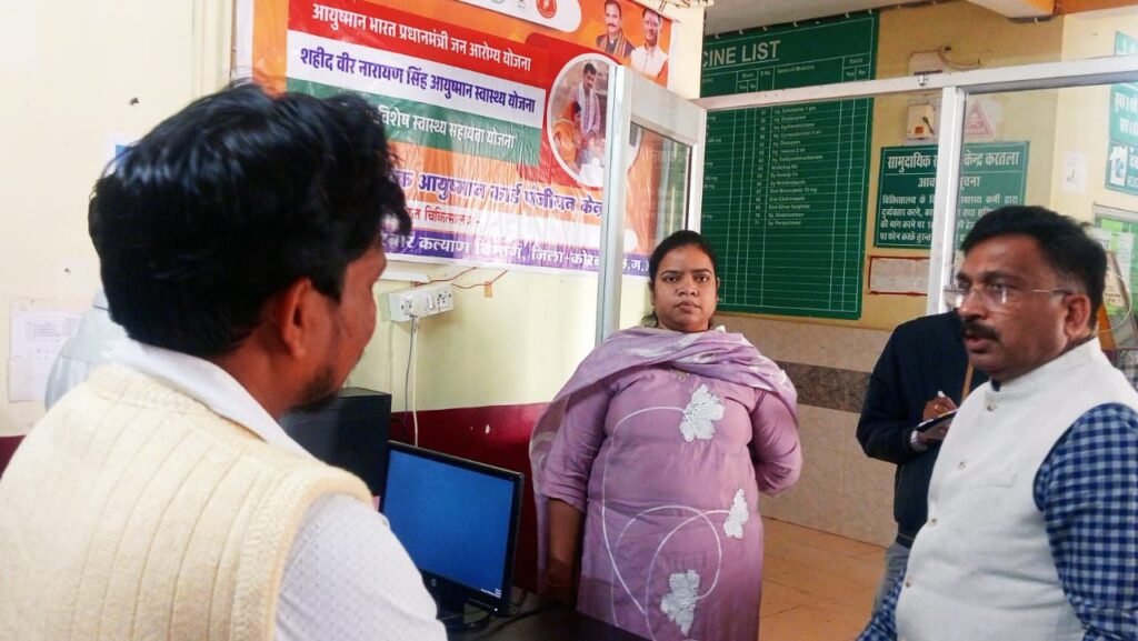 निरीक्षण के दौरान उन्होंने अस्पताल परिसर में साफ-सफाई को और बेहतर करने, मुख्य द्वार पर साफ-सफाई हेतु पैरदान लगाने, ओपीडी में आभा आईडी निर्माण की स्थिति की जानकारी लेने तथा आईईसी सामग्री का प्रभावी प्रदर्शन करने के निर्देश दिए। उन्होंने आयुष्मान मित्र कक्ष में कार्यरत ऑपरेटर को आभा आईडी बनाने हेतु अधिकृत करने तथा मितानिन हेल्पडेस्क में तैनात कर्मियों को अस्पताल में आने वाले मरीजों को उपलब्ध स्वास्थ्य सेवाओं की जानकारी देने और आभा आईडी बनाने में सहयोग करने के निर्देश दिए।