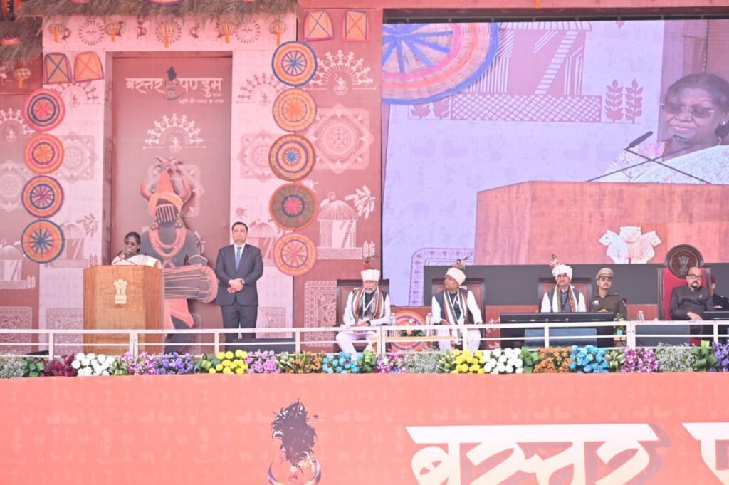 अपने संबोधन में राष्ट्रपति ने बस्तर के बदले हालातों का भी उल्लेख किया। उन्होंने कहा कि वर्षों तक यह क्षेत्र हिंसा और माओवाद से प्रभावित रहा जिससे आम लोगों को भारी कष्ट झेलने पड़े। लेकिन अब स्थिति बदल रही है। लोग हिंसा का रास्ता छोड़कर लोकतंत्र और विकास की मुख्यधारा से जुड़ रहे हैं। वर्षों से बंद स्कूल दोबारा खुल रहे हैं। दुर्गम इलाकों तक सड़क, बिजली, पानी, शिक्षा और स्वास्थ्य सुविधाएँ पहुँच रही हैं और लोगों के मन में विश्वास लौट रहा है।