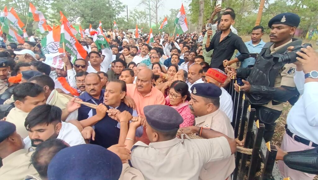 सांसद ज्योत्स्ना महंत और पूर्व मंत्री जय सिंह अग्रवाल के नेतृत्व में बैरिकेड तोड़ते हुए आगे बढ़े कार्यकर्ता, राष्ट्रपति के नाम सौंपा गया विस्तृत ज्ञापन