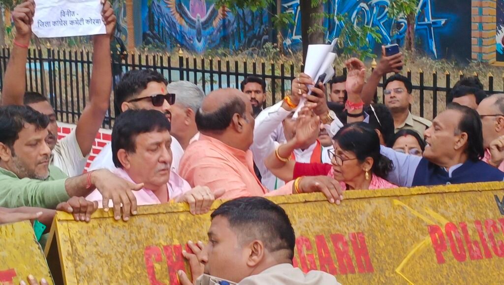 मनरेगा बचाओ अभियान में कोरबा में कांग्रेस का उग्र प्रदर्शन, कलेक्ट्रेट घेराव, राष्ट्रपति के नाम सौंपा ज्ञापन