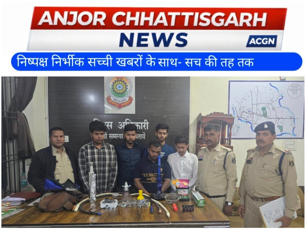 बिलासपुर ACGN:- थाना सरकण्डा क्षेत्र में संचालित अवैध हुक्का बार के विरुद्ध पुलिस ने कार्रवाई करते हुए 5 आरोपियों को गिरफ्तार किया है। यह कार्रवाई आर्यन पब्लिक स्कूल के पास चोरी-छिपे संचालित किए जा रहे हुक्का बार पर की गई।