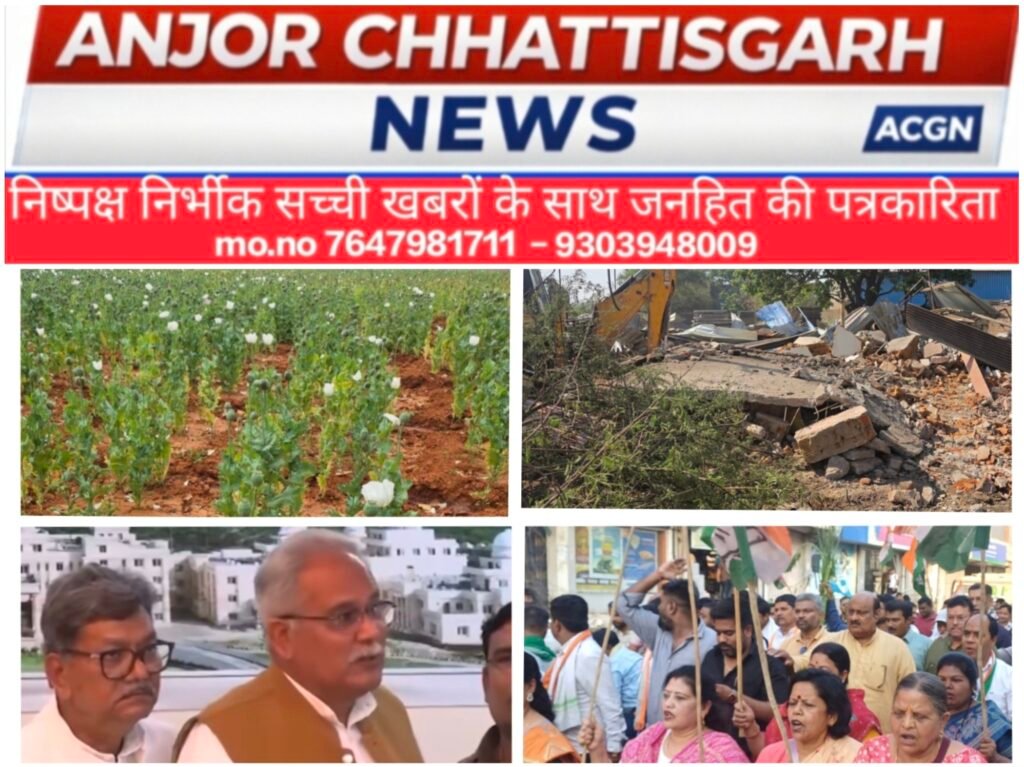 दुर्ग में अवैध कब्जे पर बुलडोजर, भाजपा नेता विनायक ताम्रकार निलंबित, बलरामपुर के कुसमी में 2–3 एकड़ में मिली अफीम की खेती से मचा हड़कंप