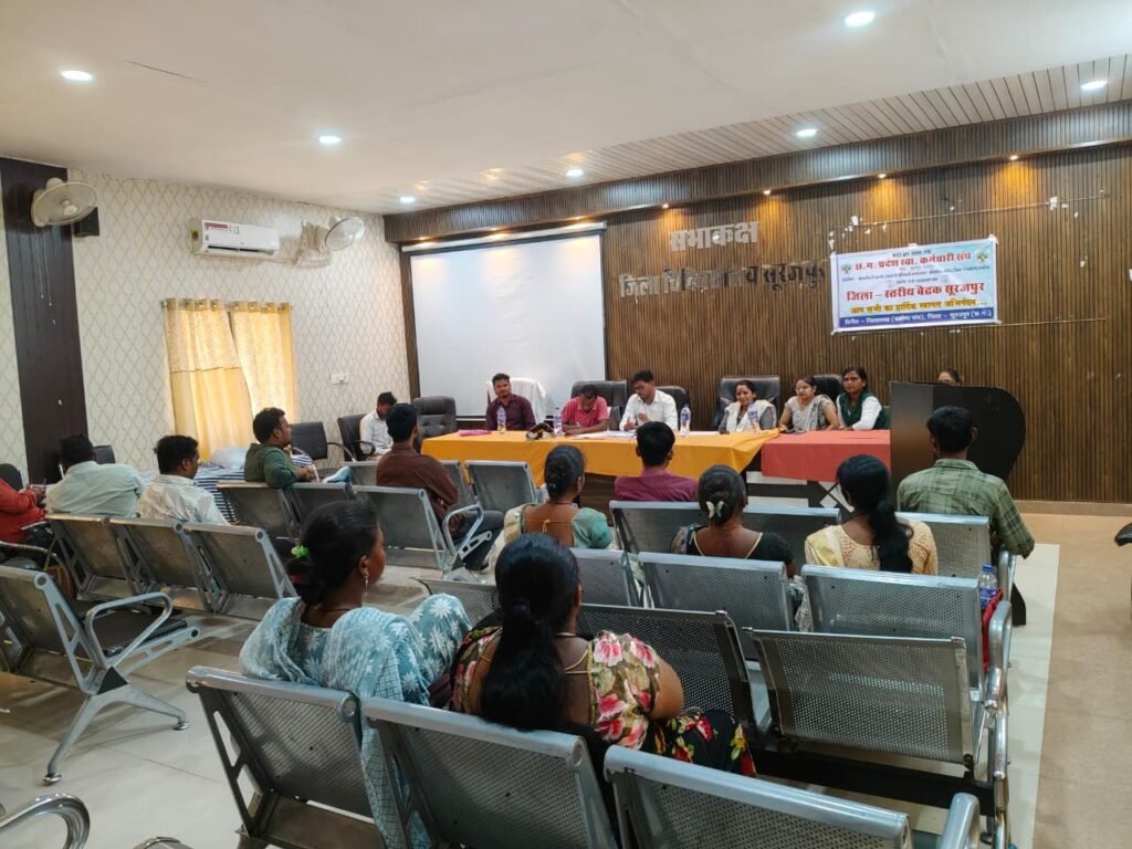 सूरजपुर ACGN:- छत्तीसगढ़ प्रदेश स्वास्थ्य कर्मचारी संघ के बैनर तले प्रकोष्ठ संघ के जिलाध्यक्ष निलेश कुमार साहू के नेतृत्व में जीवन दीप समिति (जेडीएस) कर्मचारियों की जिला स्तरीय बैठक आयोजित की गई। बैठक में कर्मचारियों से जुड़े कई महत्वपूर्ण मुद्दों पर चर्चा करते हुए संगठन को मजबूत बनाने के लिए जिला, ब्लॉक और जिला अस्पताल स्तर पर विशेष समितियों के गठन का निर्णय लिया गया। हालांकि इन समितियों की औपचारिक अधिसूचना अभी जारी नहीं की गई है।