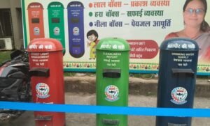 साकेत भवन में लगाए गए तीन रंगों के लेटर बॉक्स