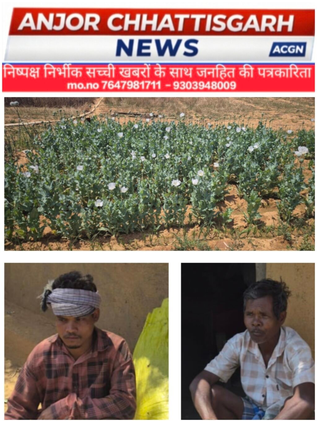 रायगढ़ में फिर उजागर हुई अफीम की खेती, लैलूंगा में 2 आरोपी गिरफ्तार,आखिर कब लगेगी अवैध खेती पर लगाम?