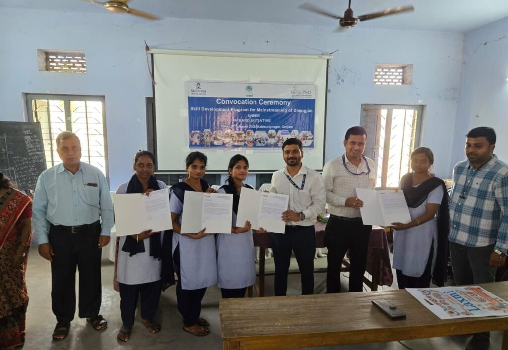कविसूर्यनगर कौशल विकास केंद्र में 30 मूक-बधिर दिव्यांगजनों के लिए विद्युत संचालित सिलाई मशीनों पर आधारित प्रशिक्षण कार्यक्रम सफलतापूर्वक पूर्ण किया गया। इस अवसर पर नाबार्ड गंजाम के जिला विकास प्रबंधक संजीव मिश्रा, कविसूर्यनगर यूको बैंक के शाखा प्रबंधक राजेश पाढ़ी तथा बनदेवी औद्योगिक प्रशिक्षण केंद्र के प्रशिक्षण अधिकारी रघुनाथ पाढ़ी मुख्य अतिथि के रूप में उपस्थित रहे। कार्यक्रम के दौरान प्रशिक्षण प्राप्त प्रतिभागियों को प्रमाणपत्र प्रदान किए गए तथा विभिन्न संस्थानों में रोजगार प्राप्त करने वाले प्रशिक्षणार्थियों को नियुक्ति पत्र भी सौंपे गए।