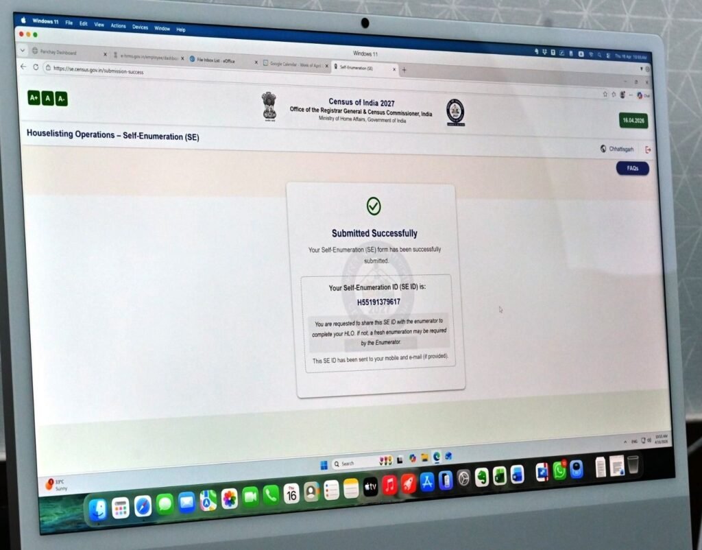 रायपुर: छत्तीसगढ़ में जनगणना 2027 की तैयारियों के तहत पहले चरण में स्व गणना प्रक्रिया की शुरुआत कर दी गई है। मकान सूचीकरण और मकानों की गणना के क्रम में 16 अप्रैल से 30 अप्रैल 2026 तक नागरिकों को स्वयं अपनी जानकारी दर्ज करने की सुविधा दी गई है। इस पहल के तहत आज मंत्रालय महानदी भवन में मुख्य सचिव श्री विकासशील ने स्वयं स्व गणना के अंतर्गत अपनी जानकारी पोर्टल पर दर्ज की और प्रदेशवासियों से इस सुविधा का अधिक से अधिक उपयोग करने की अपील की।