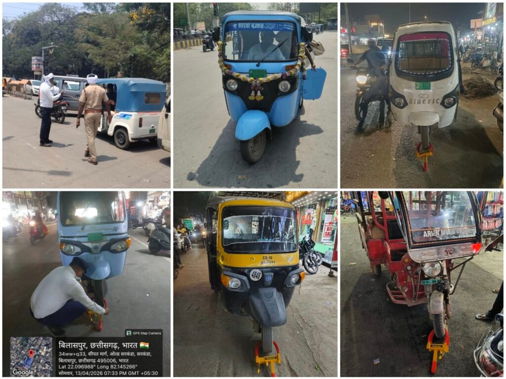 बिलासपुर शहर में बेतरतीब और अव्यवस्थित तरीके से ऑटो संचालन करने वाले चालकों के खिलाफ यातायात पुलिस ने सख्त कार्रवाई शुरू कर दी है। पुलिस उप महानिरीक्षक एवं वरिष्ठ पुलिस अधीक्षक रजनेश सिंह के दिशा निर्देश तथा अतिरिक्त पुलिस अधीक्षक यातायात रामगोपाल करियारे के पर्यवेक्षण में यातायात पुलिस द्वारा विशेष अभियान चलाकर ऑटो चालकों की सघन जांच की गई और नियमों का उल्लंघन करने वालों पर कार्रवाई की गई।