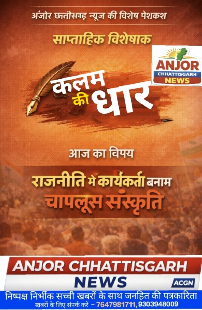 ‘कलम की धार’ कोई औपचारिक कॉलम नहीं, बल्कि व्यवस्था के मौन को तोड़ने वाली आवाज़ है।पत्रकारिता का उद्देश्य केवल घटनाओं की सूचना देना नहीं होता, बल्कि समय-समय पर समाज और राजनीति के सामने सच्चाई का आईना भी रखना होता है। इसी सोच के साथ अंजोर छत्तीसगढ़ न्यूज़ का साप्ताहिक विशेषांक “कलम की धार” उन विषयों को उठाता है जिन पर अक्सर चर्चा कम होती है, लेकिन जिनका प्रभाव लोकतंत्र और समाज पर गहरा पड़ता है।