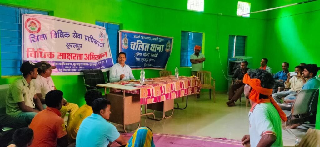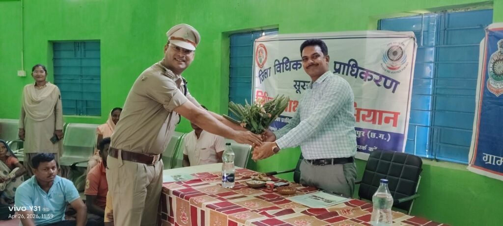 कार्यक्रम का संचालन पैरा लीगल वॉलंटियर सत्य नारायण द्वारा किया गया। इस अवसर पर बड़ी संख्या में ग्रामीणजन, महिलाएं, पंचायत प्रतिनिधि, चौकी स्टाफ एवं पीएलव्ही उमेश कुमार राजवाड़े सहित अन्य लोग उपस्थित रहे।