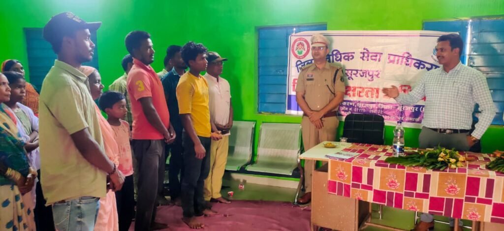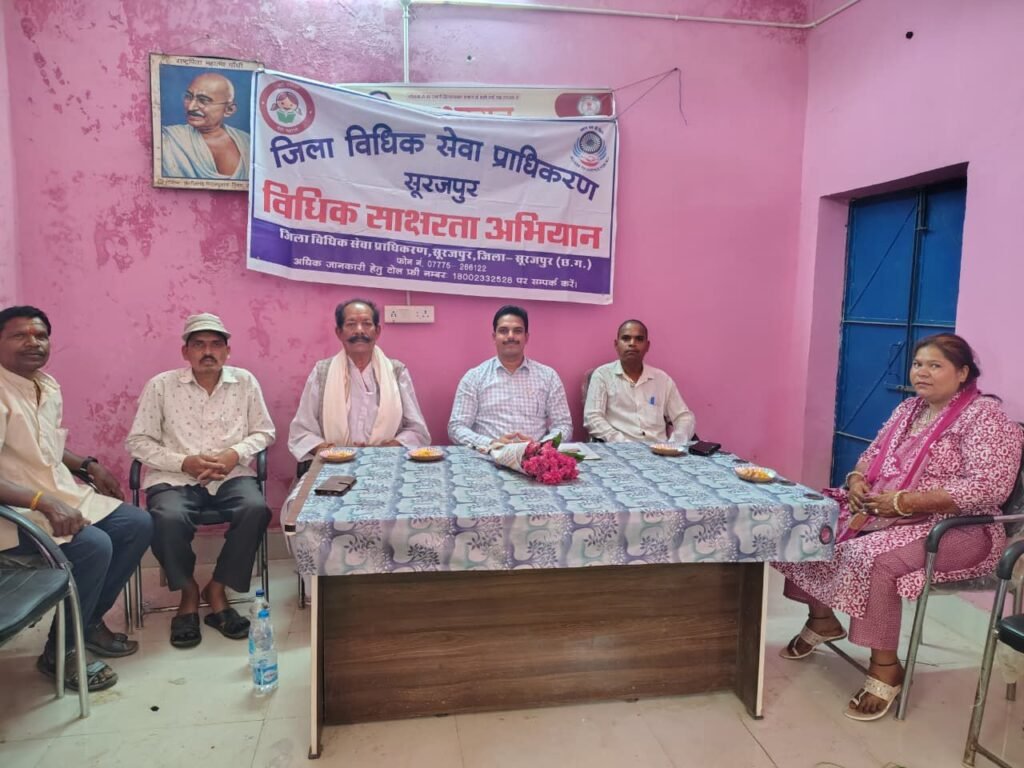 सूरजपुर जिले के ग्राम पंचायत ऊंचडीह एवं लोधीमा में जिला विधिक सेवा प्राधिकरण सूरजपुर के तत्वावधान में कानूनी जागरूकता कार्यक्रम का सफल आयोजन किया गया। कार्यक्रम का मार्गदर्शन प्रधान जिला एवं सत्र न्यायाधीश एवं अध्यक्ष जिला विधिक सेवा प्राधिकरण विनीता वार्नर के निर्देशन तथा सचिव सुश्री पायल टोपनो के कुशल मार्गदर्शन में किया गया। कार्यक्रम की अध्यक्षता द्वितीय व्यवहार न्यायाधीश कनिष्ठ श्रेणी हिमांशु पण्डा द्वारा की गई।