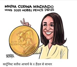 ट्रंप की मेहनत का नतीजा निकला उलटा नोबेल चला गया उनकी “राजनीतिक चेली” मरिया कोरिना मचाडो के हाथ, जिसे उन्होंने खुद लोकतंत्र का “टूल” बनाकर दुनिया में भेजा था। अब वही नोबेल लेकर ट्रंप को थैंक यू कह रही हैं। गुरु तो रह गया गुड़, चेली शक्कर हो गई यही तो राजनीति का शाश्वत व्यंग्य है!