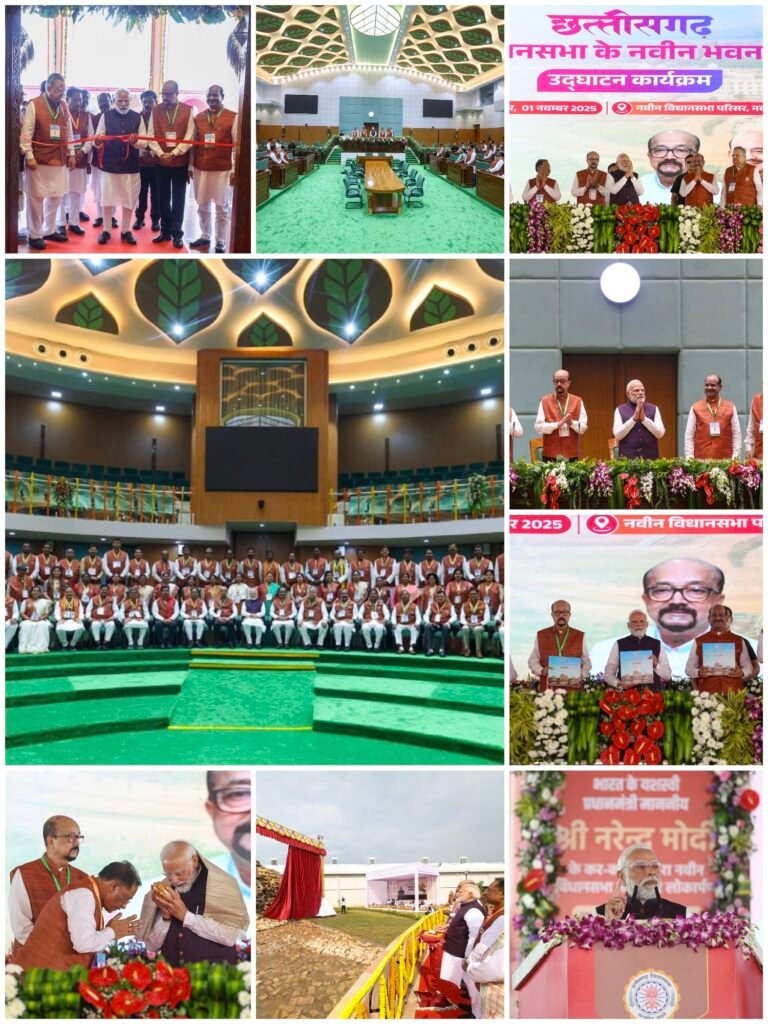 छत्तीसगढ़ राज्य की रजत जयंती के अवसर पर शनिवार का दिन इतिहास में स्वर्णाक्षरों में दर्ज हो गया। प्रधानमंत्री नरेंद्र मोदी ने नवा रायपुर में नव-निर्मित छत्तीसगढ़ विधानसभा भवन का लोकार्पण किया और कहा “यह भवन लोकतंत्र का तीर्थ स्थल है, जिसका हर स्तंभ पारदर्शिता और जवाबदेही का प्रतीक बनेगा।”