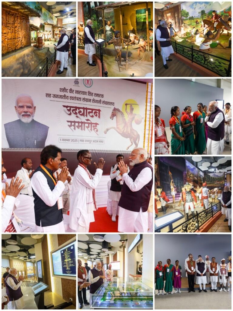 इस अवसर पर प्रधानमंत्री ने शहीद वीर नारायण सिंह जनजातीय स्वतंत्रता सेनानी संग्रहालय का उद्घाटन करते हुए जनजातीय समाज के बलिदानों को नमन किया। उन्होंने कहा कि यह संग्रहालय स्वतंत्रता आंदोलन में आदिवासी समाज के योगदान की 150 वर्षों की गौरवगाथा को अमर करेगा।