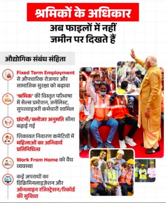 उन्होंने कहा कि संहिताओं के लागू होने से पूरे देश में निम्नलिखित बड़े परिवर्तन सुनिश्चित होंगे,न्यूनतम वेतन का सर्वत्र अधिकार, महिलाओं को पुरुषों के समान वेतन, फिक्स्ड टर्म कर्मचारियों को ग्रेच्युटी, सभी श्रमिकों को सामाजिक सुरक्ष, मुफ्त वार्षिक स्वास्थ्य जांच, ओवरटाइम पर दोगुना वेतन