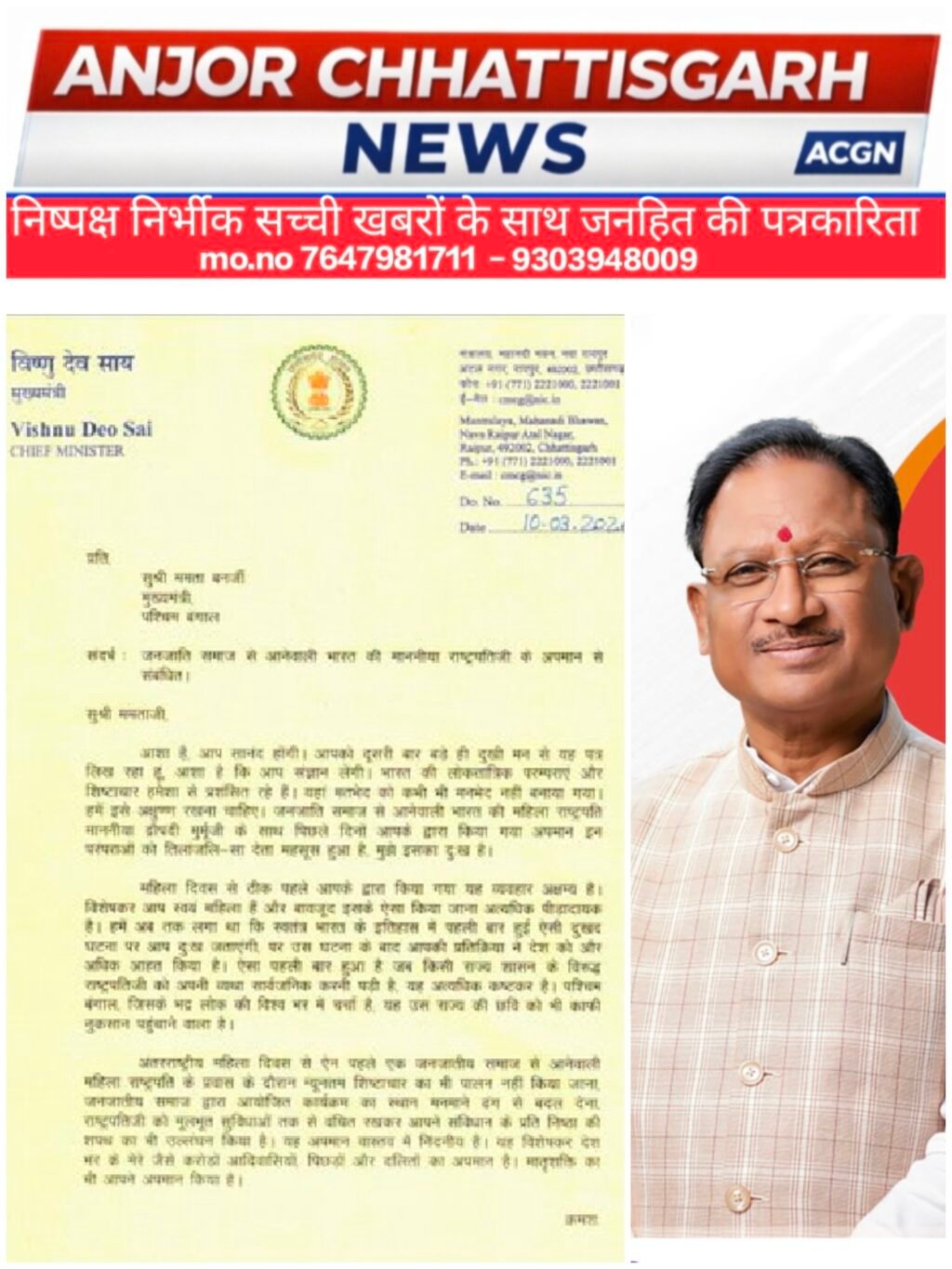 रायपुर, छत्तीसगढ़By ACGN 7647981711, 9303948009 संवैधानिक मर्यादाओं के सम्मान पर जोर, आदिवासी समाज और मातृशक्ति के सम्मान का उठाया मुद्दा...